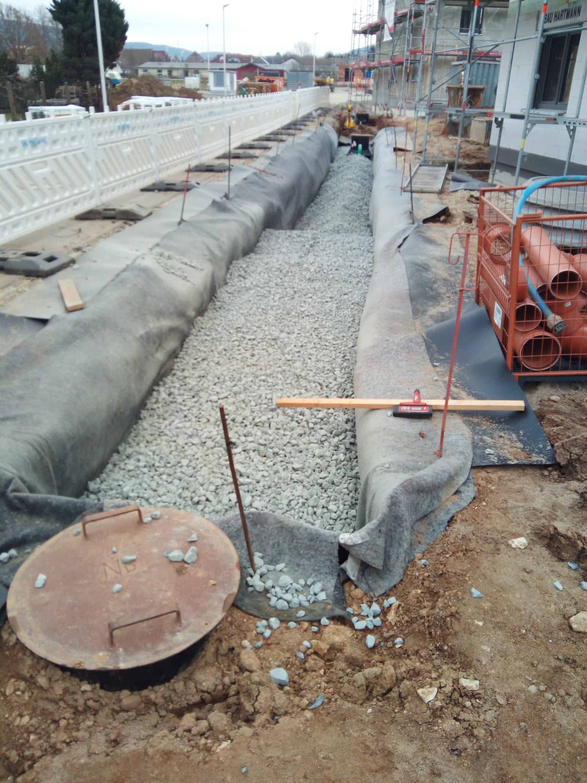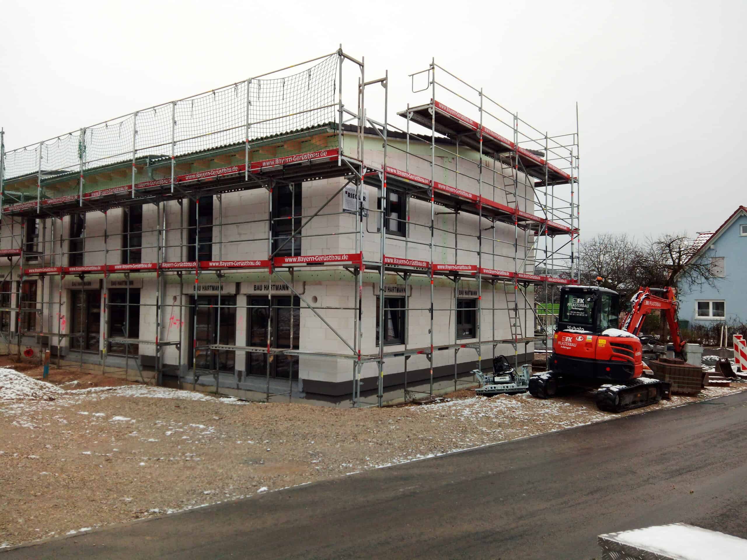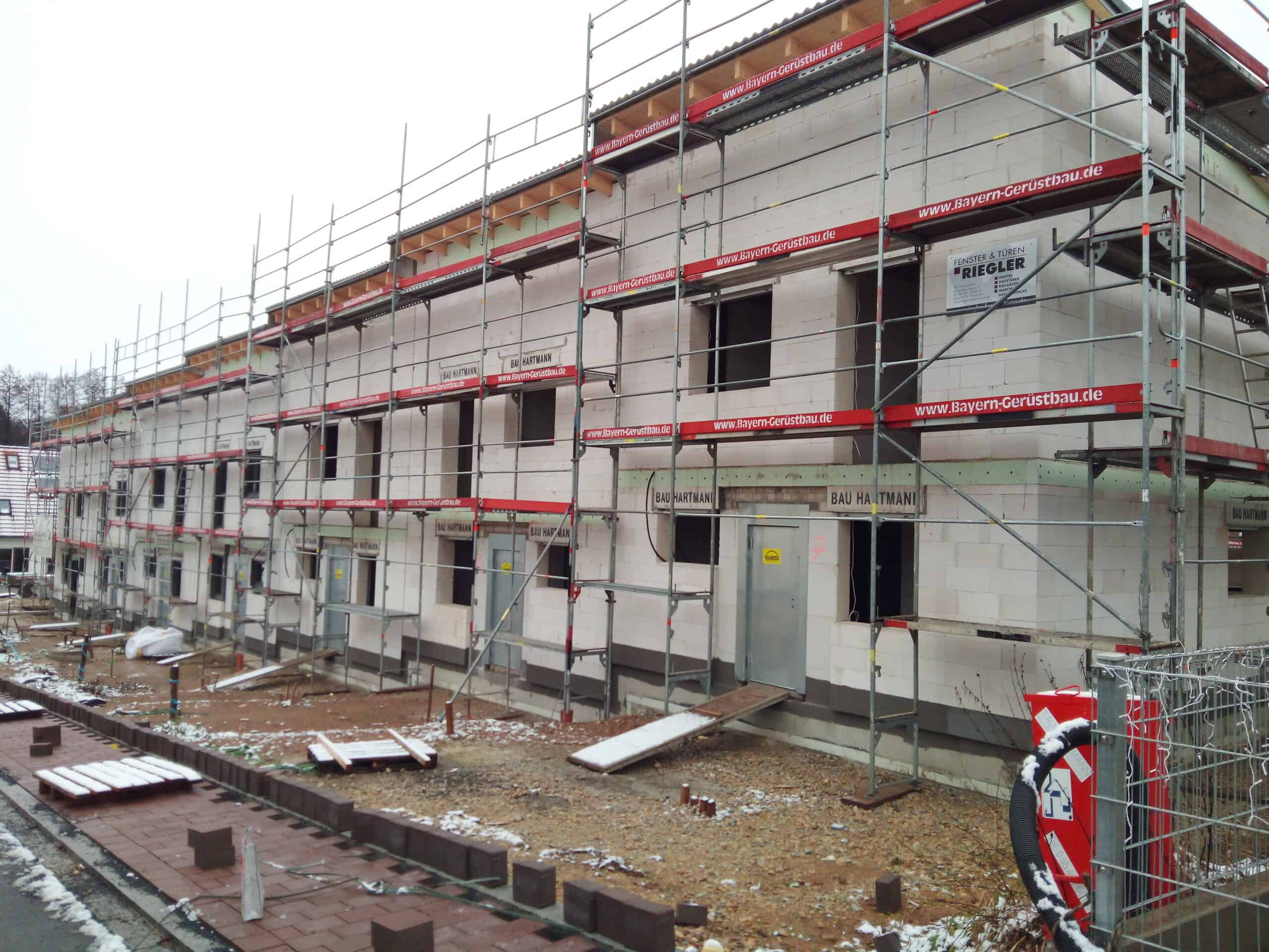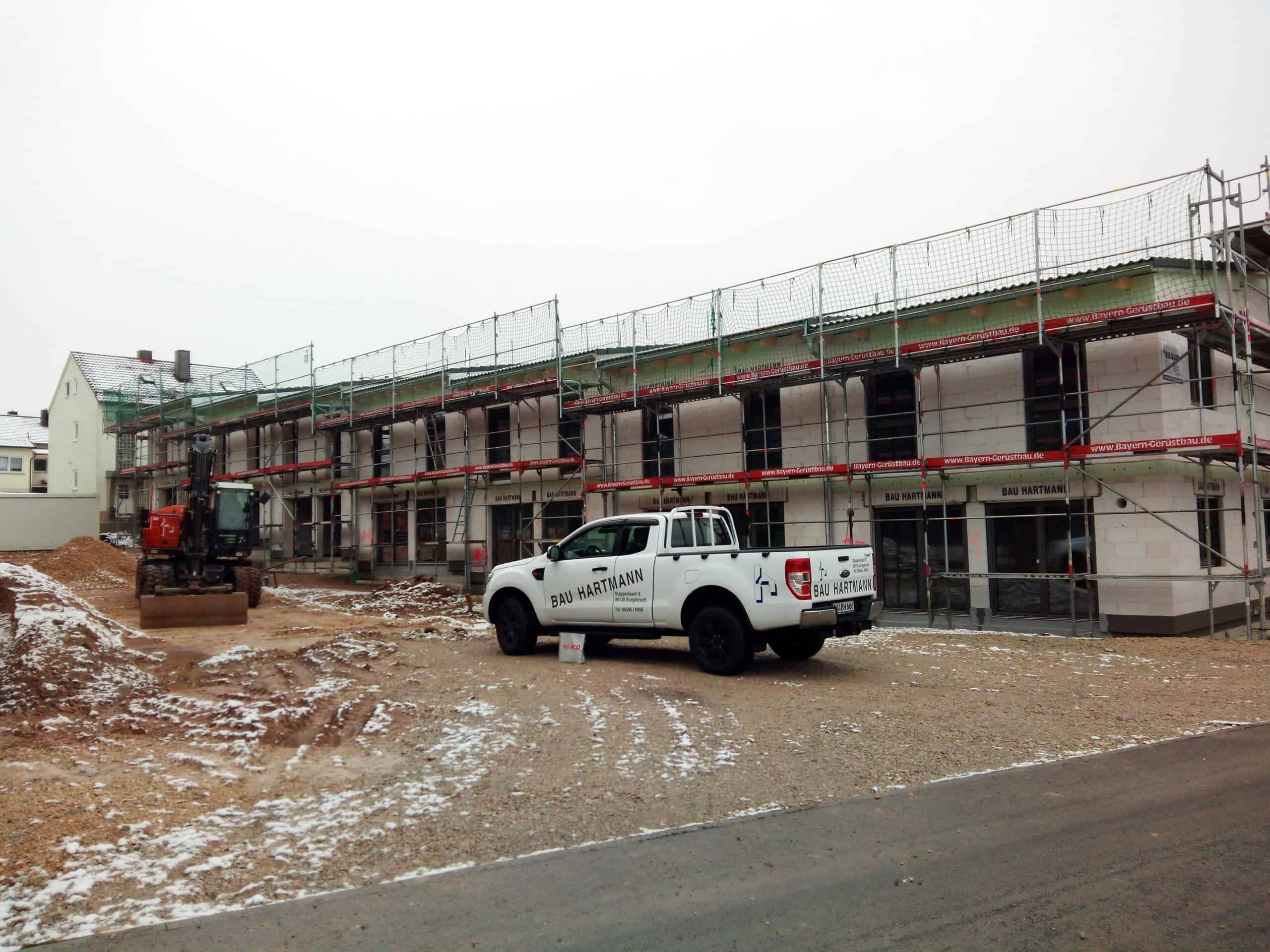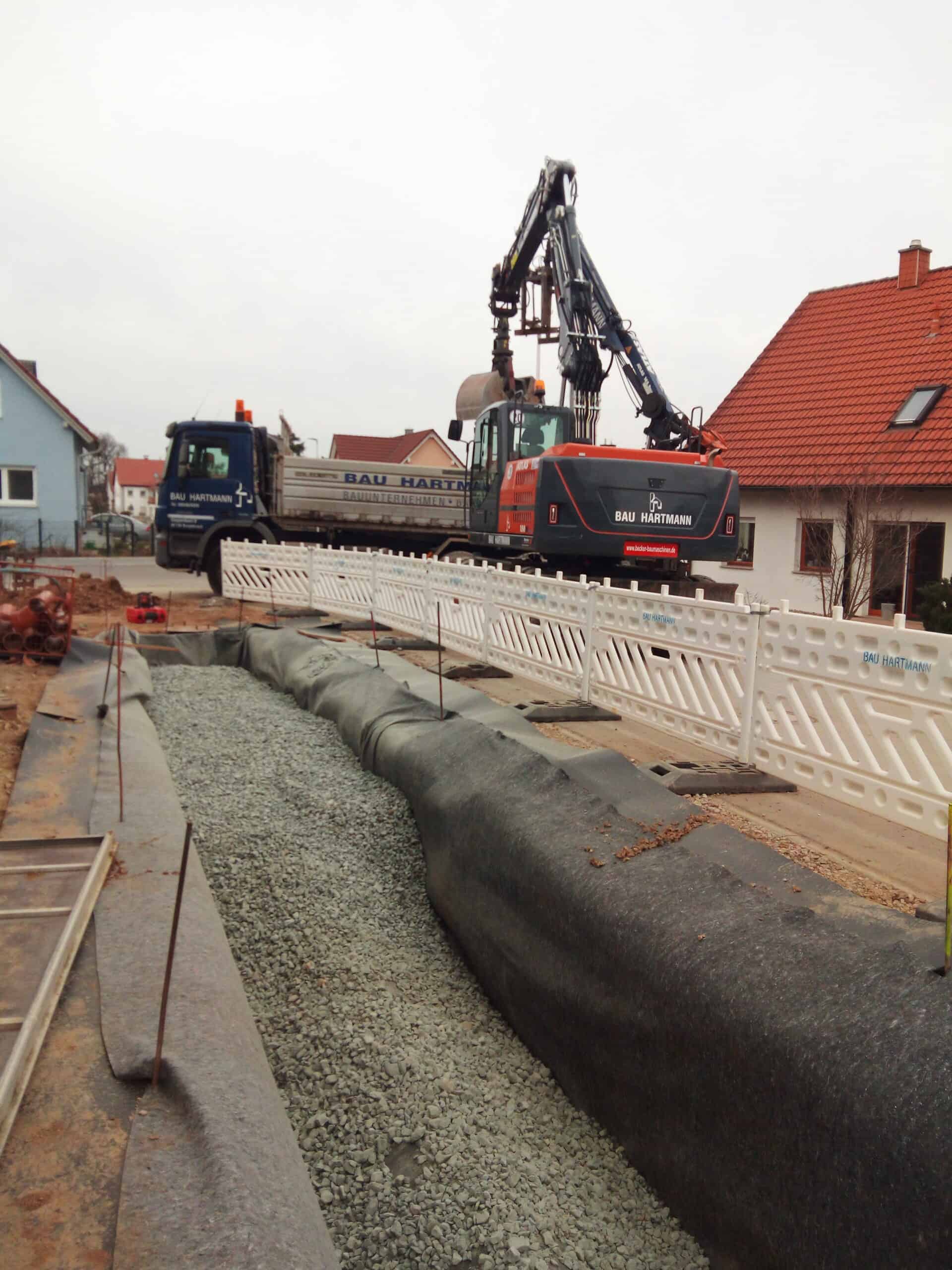 Für das Wohnbauprojekt in Litzendorf übernahm die Bau Hartmann GmbH & Co. KG den kompletten Leistungsumfang – vom Tiefbau über den Kanalbau bis hin zum Hochbau. Ziel war die termingerechte Realisierung von 14 modernen Reihenhäusern in massiver Bauweise.
